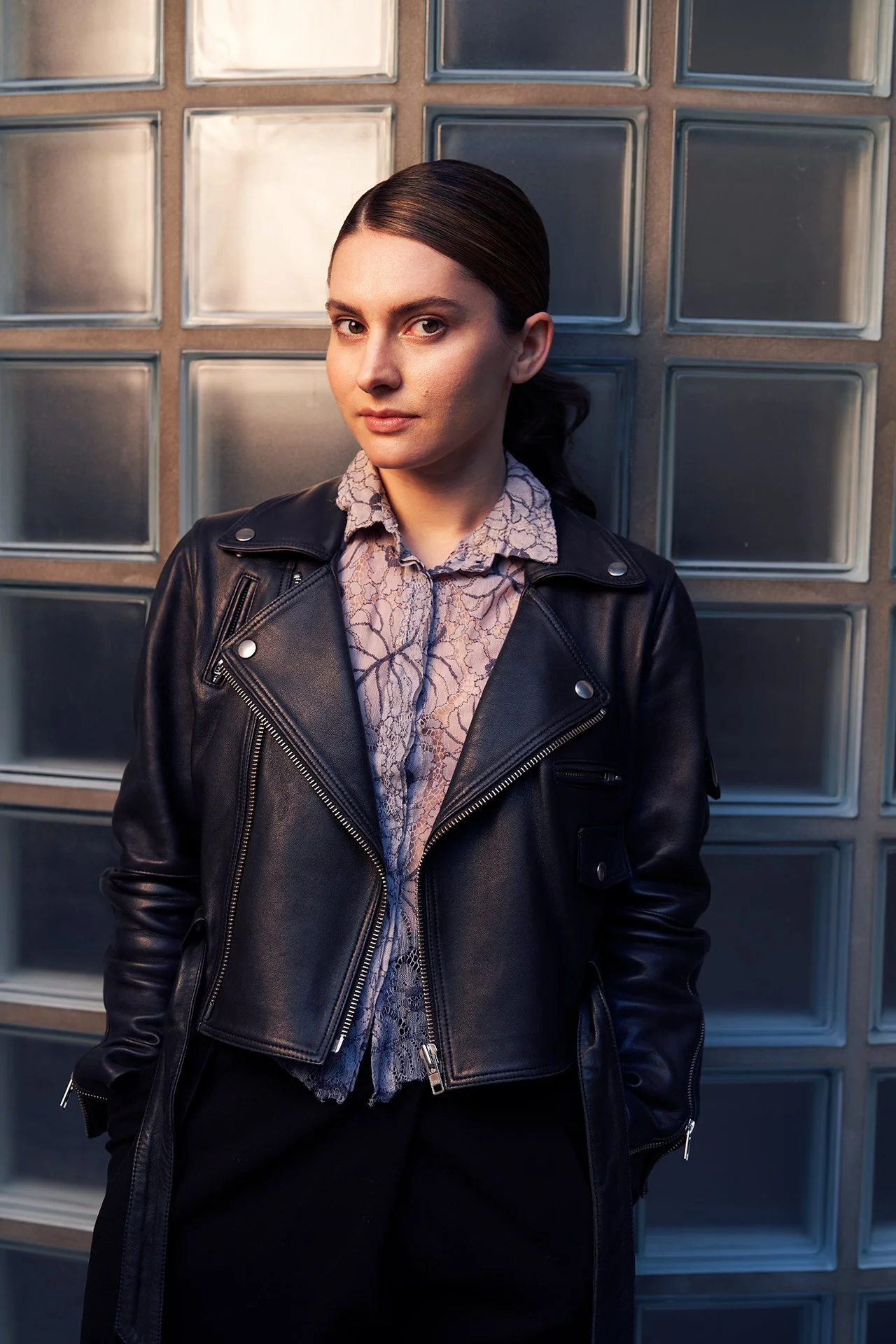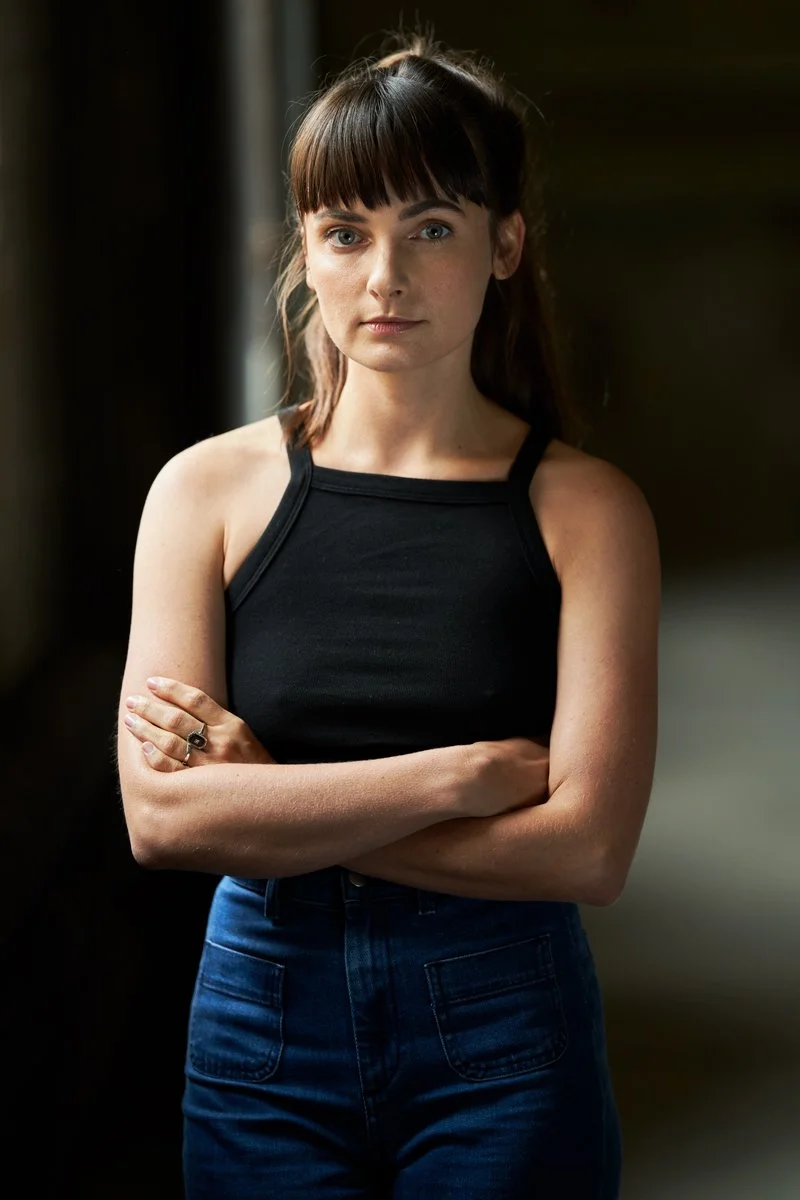 Dieses beeindruckende Headshot-Porträt von Luise Wolfram, aufgenommen von Portrait- und People-Fotograf Krzysztof Macikowski alias Koszki Photography, fängt die Schauspielerin in ein