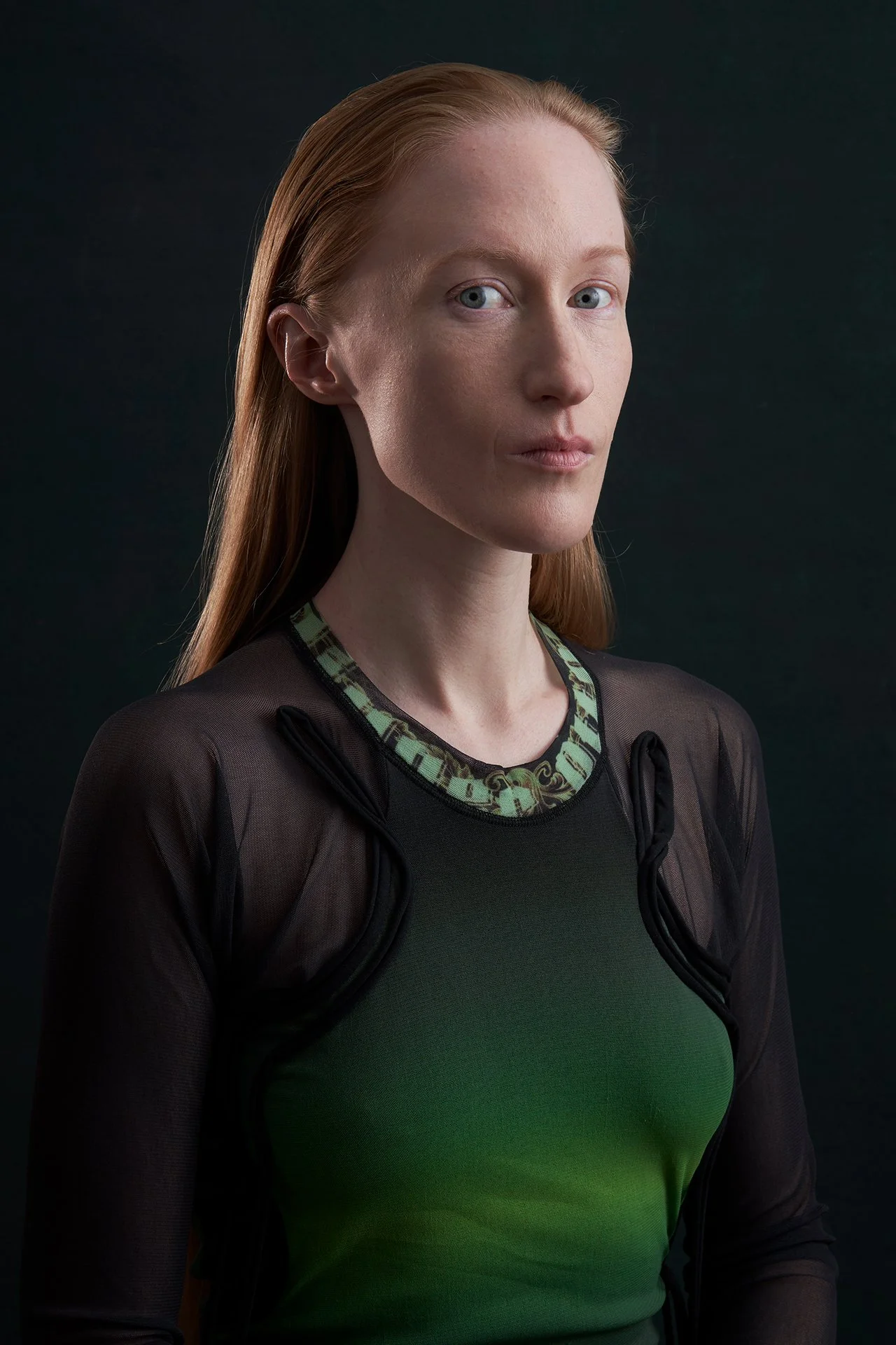 In diesem eindrucksvollen Porträt präsentiert sich Britta Thie mit ruhiger, fast ikonischer Haltung. Die klaren Linien ihres Körpers, das zur